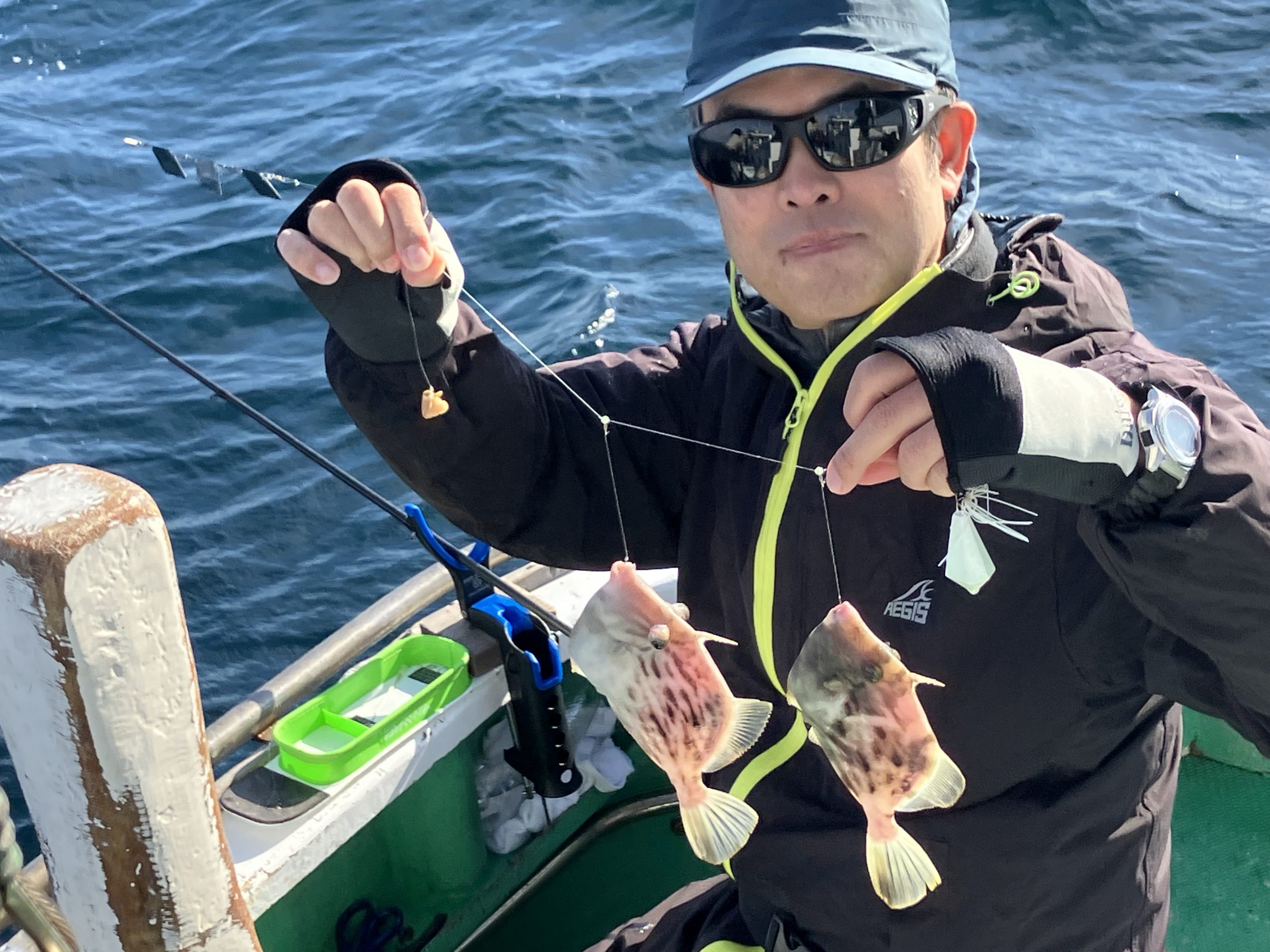 チームで1番最初にカワハギをゲットし