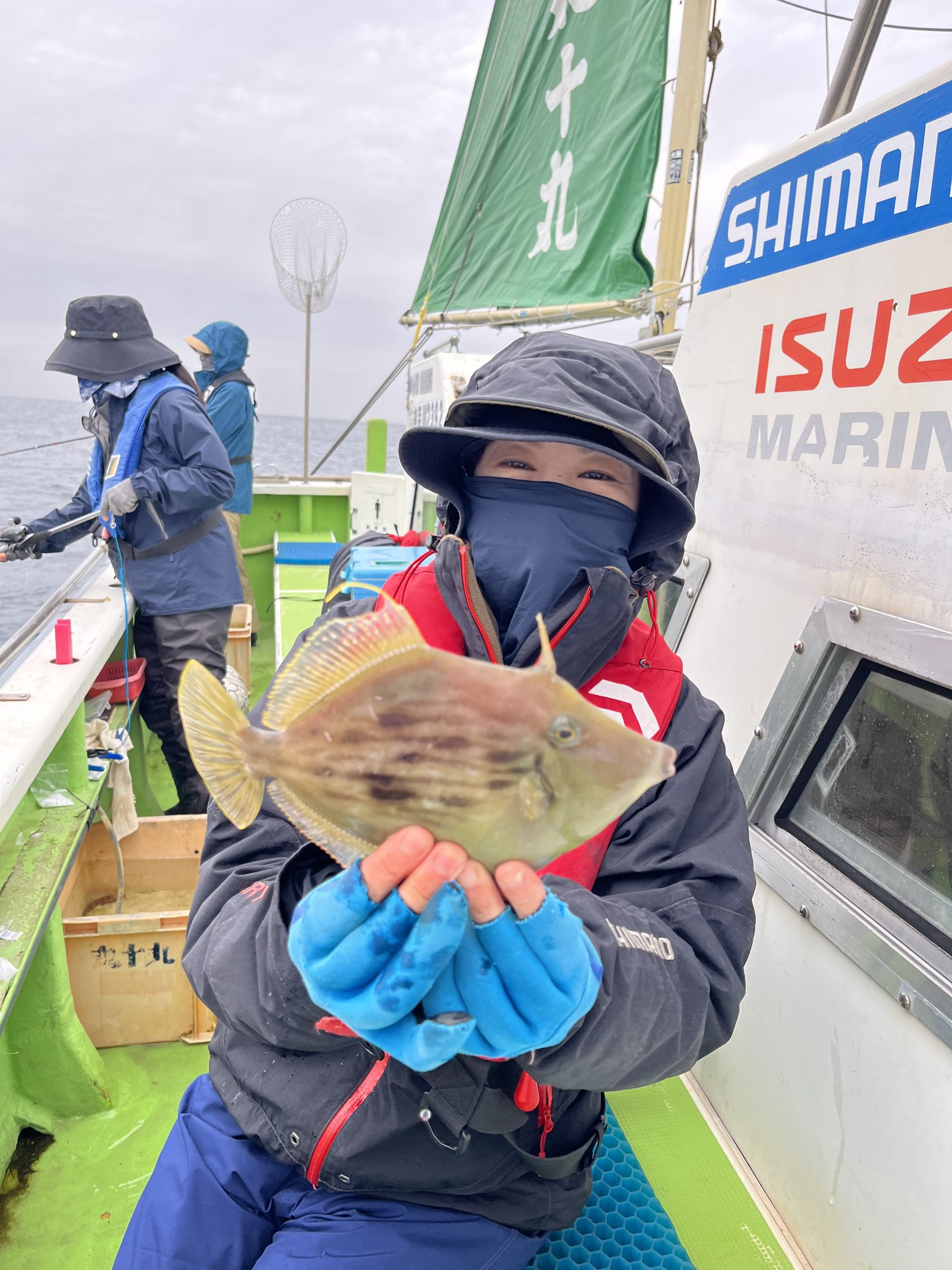 それも釣り上げた女性はカワハギ釣り